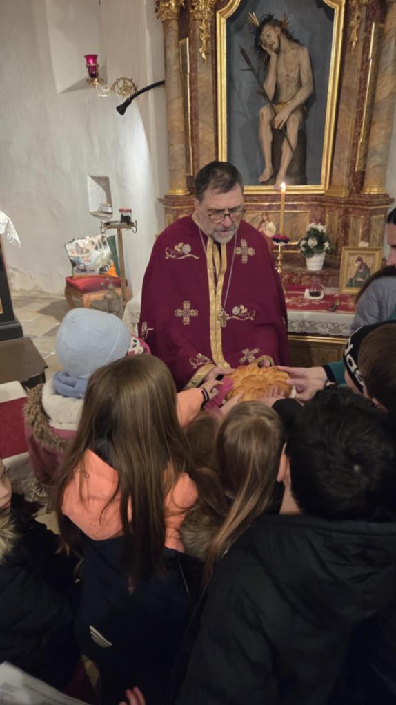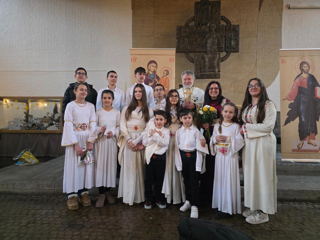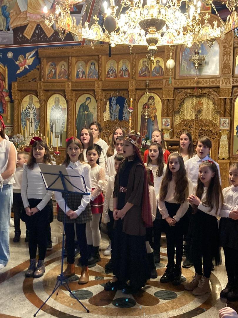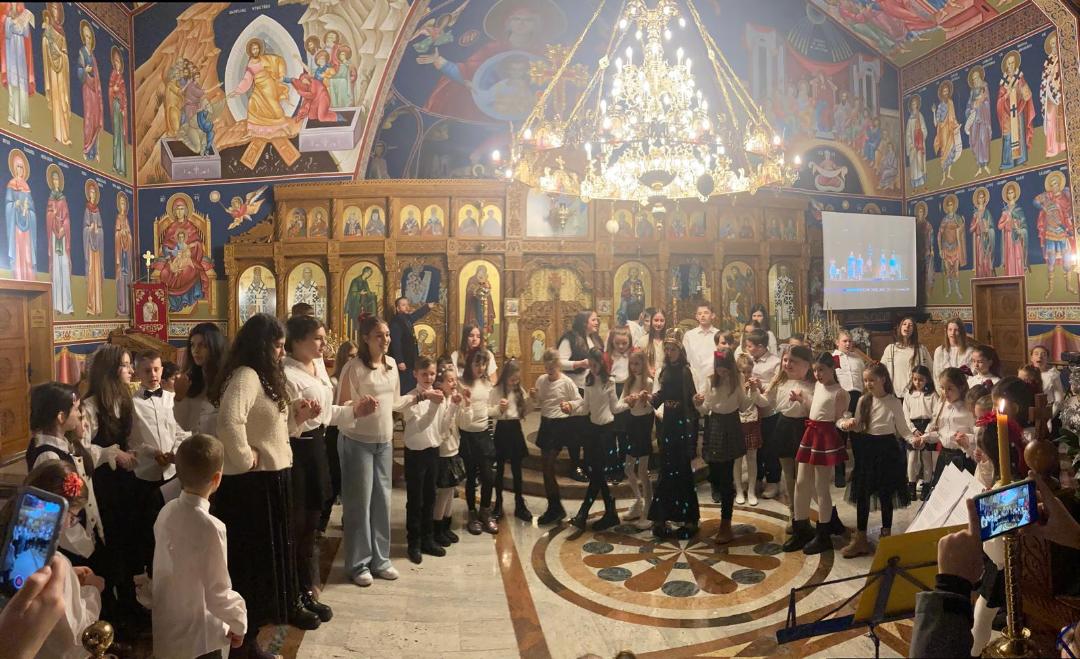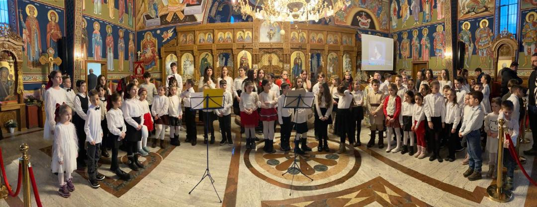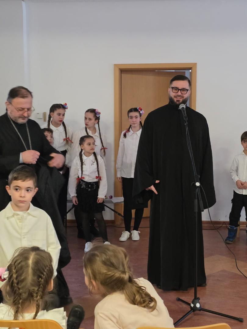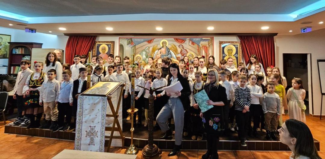 Након богослужења уследио је програм под називом „Сећање на наше корене“, који је са изузетном пажњом, љубављу и педагошком посвећеношћу припремила наставница Александра Цветковић. Кроз рецитације, песму и сценске приказе, програм је присутне повео на духовно путовање кроз историју, подсећајући на путеве наших предака и вредности које су нам у аманет оставили. Програм су водила деца која посећују допунску наставу на српском језику Министарства просвете Републике Србије.