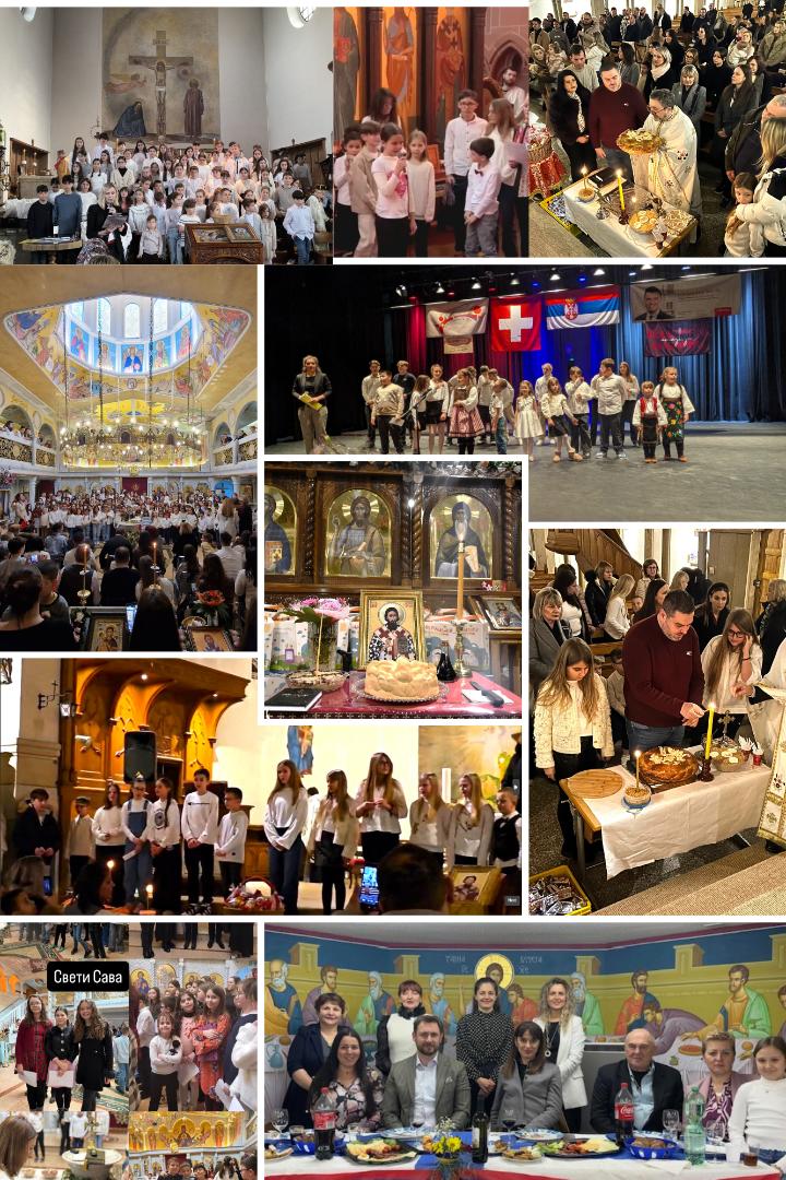 Свечаности су одржане у бројним кантоналним центрима — у Цириху, Белинцони, Базелу, Рајнаху, Белпу, Луцерну, Женеви, Лозани, Шафхаузену, Винтертуру, Виспу, Сијеру и многим другим местима. Након Светих литургија и сечења славског колача, у храмовима и дворанама владала је свечана и топла атмосфера. Свуда су одјекивали весели дечји гласови у песмама, рецитацијама и сценским приказима које су ученици припремали са својим наставницима, а који су били посвећени животу и делу Светог Саве, човека који је духовно објединио српски народ и просветним духом осветлио његов пут. Родитељи су поносно посматрали своју децу, наставници су се радовали сваком изговореном стиху, а заједница је славила за трпезом љубави.